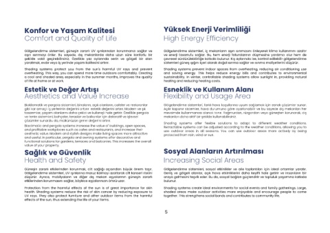şekilde vakit geçirebilirsiniz. Özellikle yaz aylarında serin ve gölgeli bir alan çevresel sürdürülebilirliğe katkıda bulunur. Kış aylarında ise, kontrol edilebilir gölgelendirme