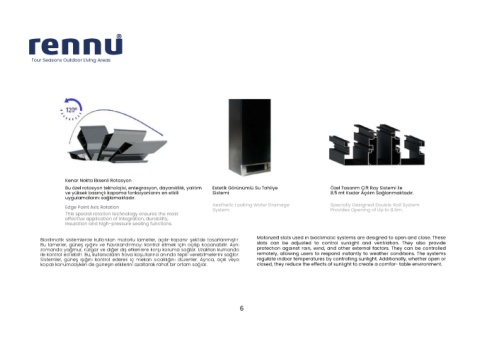 Bioklimatik sistemlerde kullanılan motorlu lameller, açılır-kapanır şekilde tasarlanmıştır. Motorızed slats used ın bıoclımatıc systems are desıgned to open and close. These