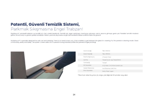 Giyotinyum®, emniyetli kullanım ve temizlik için özel olarak tasarlandı. Temizlik için dışarı sarkmaya, merdivene çıkmaya, camın arasına girmeye gerek yok. Panelleri temizlik moduna